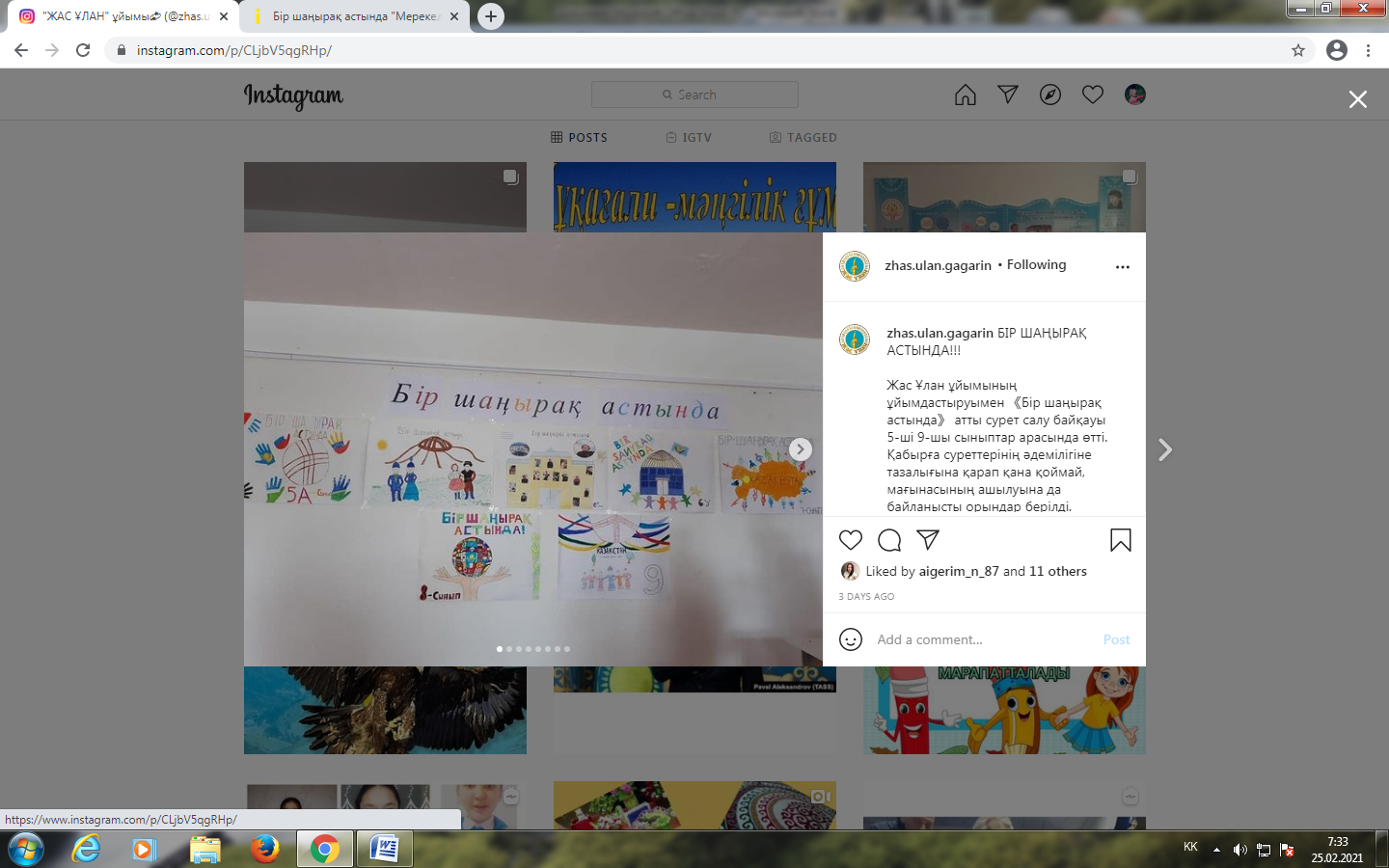 12 май 2021 0 1 2 3 4 5 «Бір шаңырақ астында»сурет байқауы 5-9 сыныптар арасында ұйымдастырылған «Бір шаңырақ астында» байқауынан І орынды 8 сынып,ІІ орынды 5ә,6ә,7 сыныптар, ІІІ орынды 5а,6а,9 сыныптар иеленді. Мақсаты: тулыққа,мейірімділікке тәрбиеленіп,сурет салуға деген ынтасымен қызығушылықтары артады.