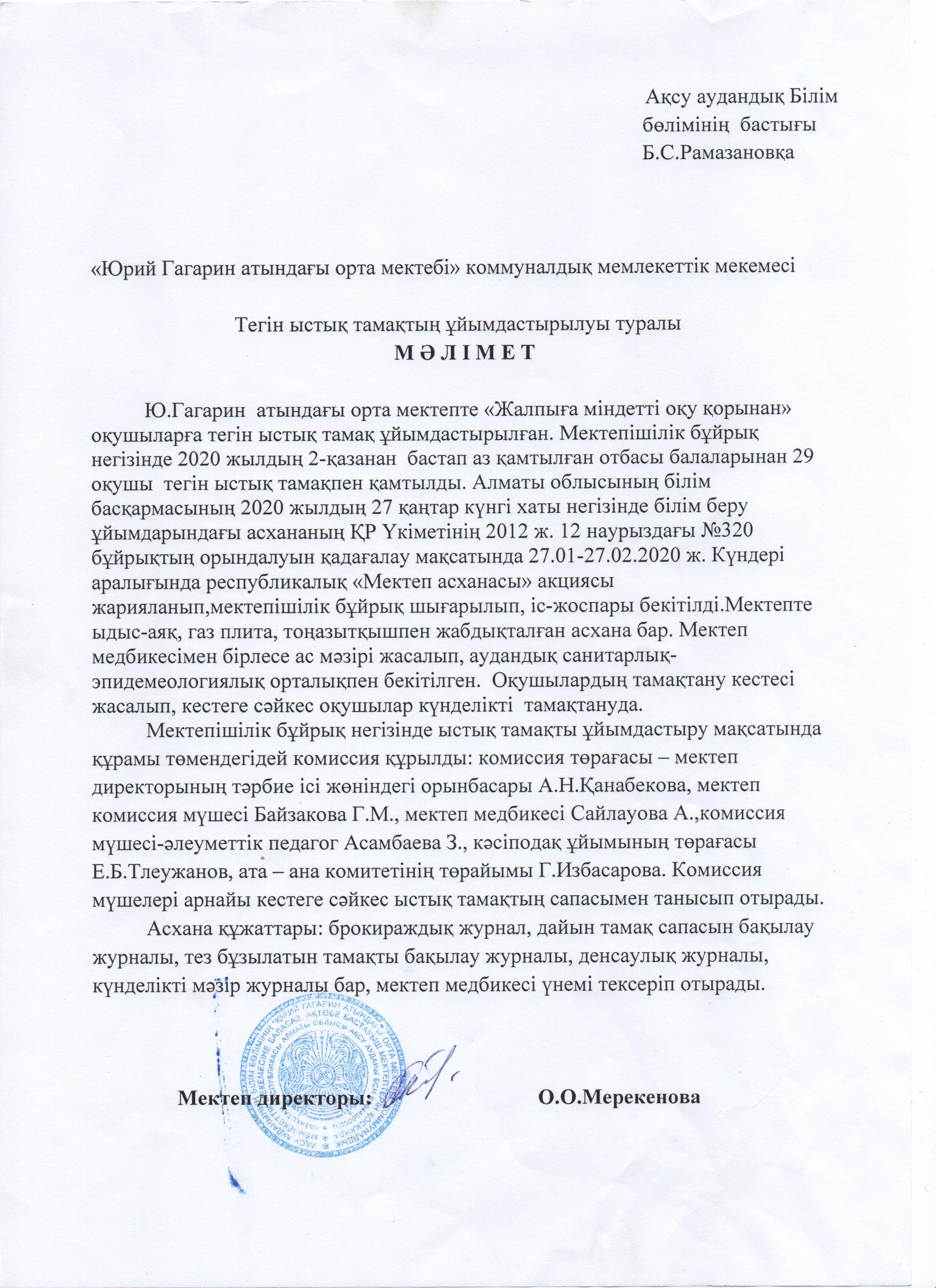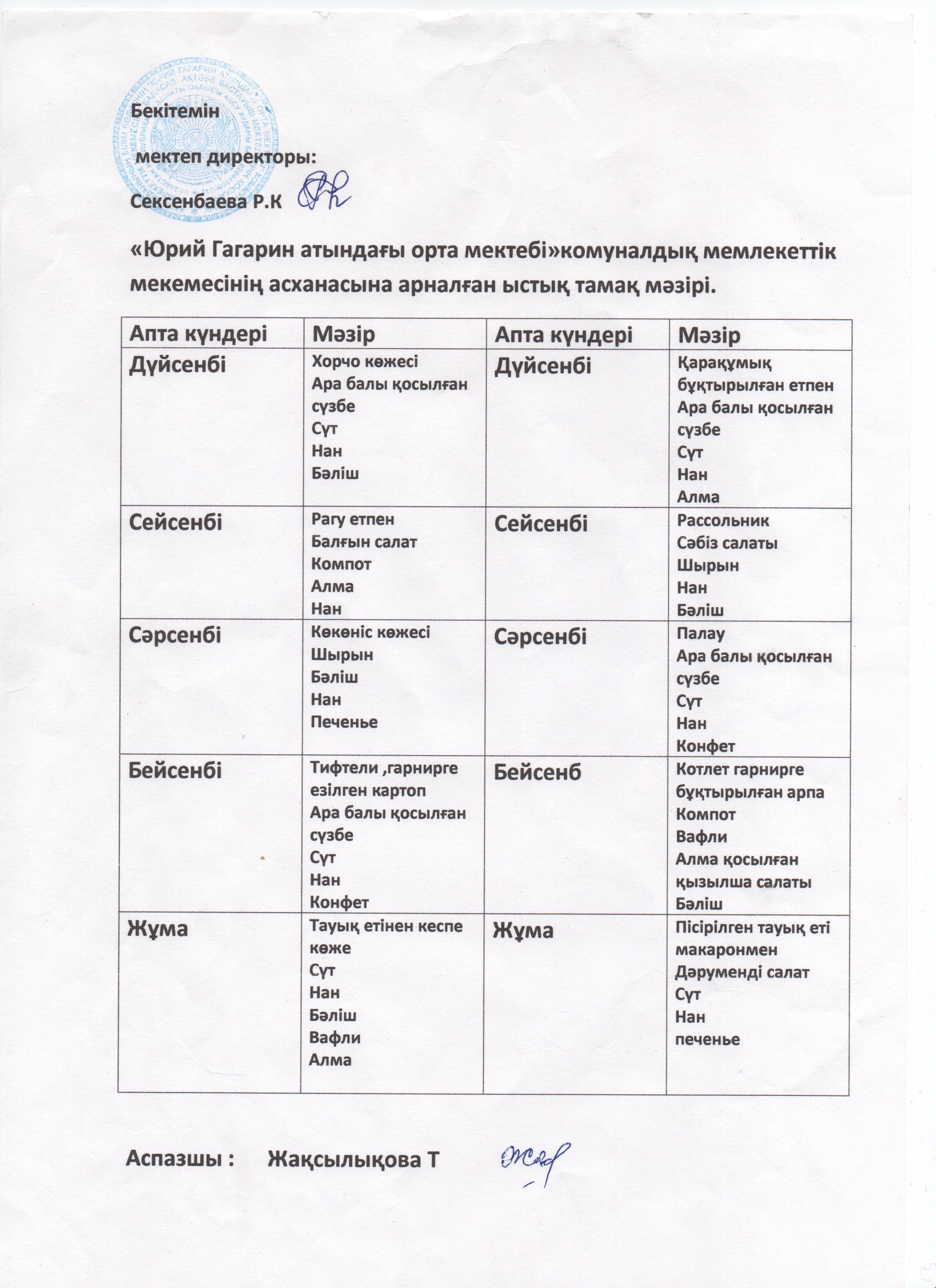 Ыстық тамақ » Жетісу облысы, Ақсу ауданы, «Юрий Гагарин атындағы орта мектебі» коммуналдық мемлекеттік мекемесі