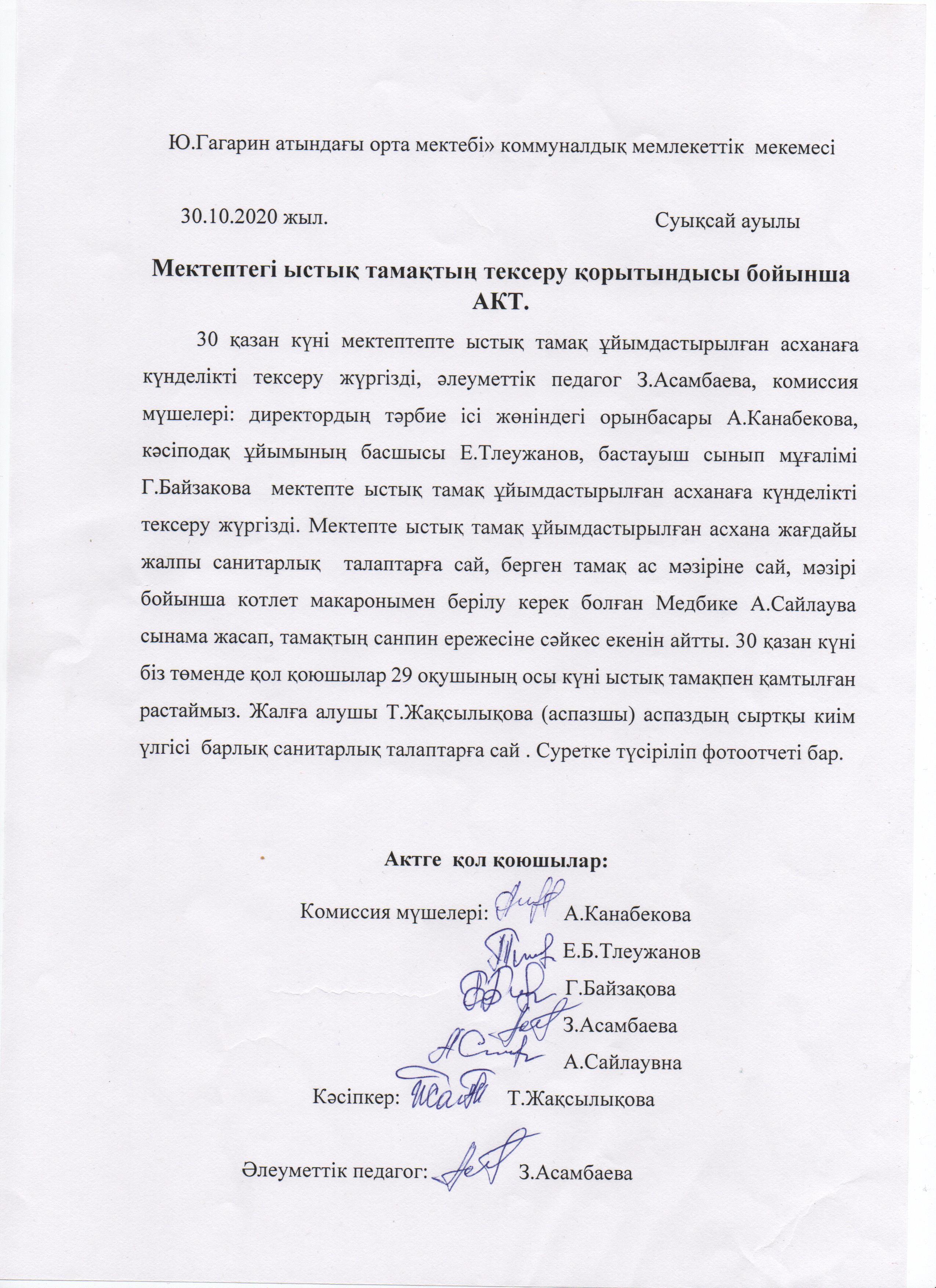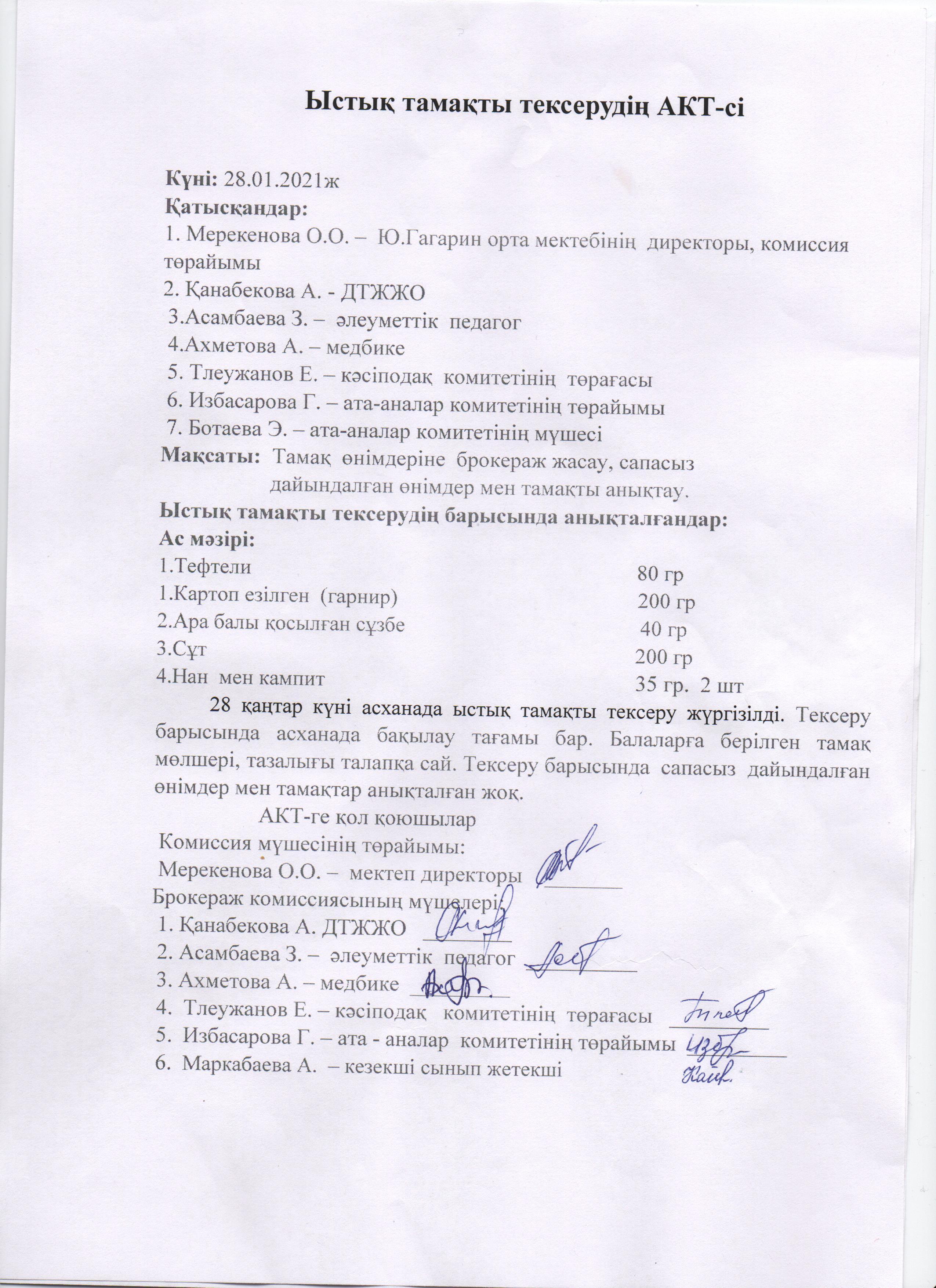 Ыстық тамақ » Жетісу облысы, Ақсу ауданы, «Юрий Гагарин атындағы орта мектебі» отдела образования Кербулакского района